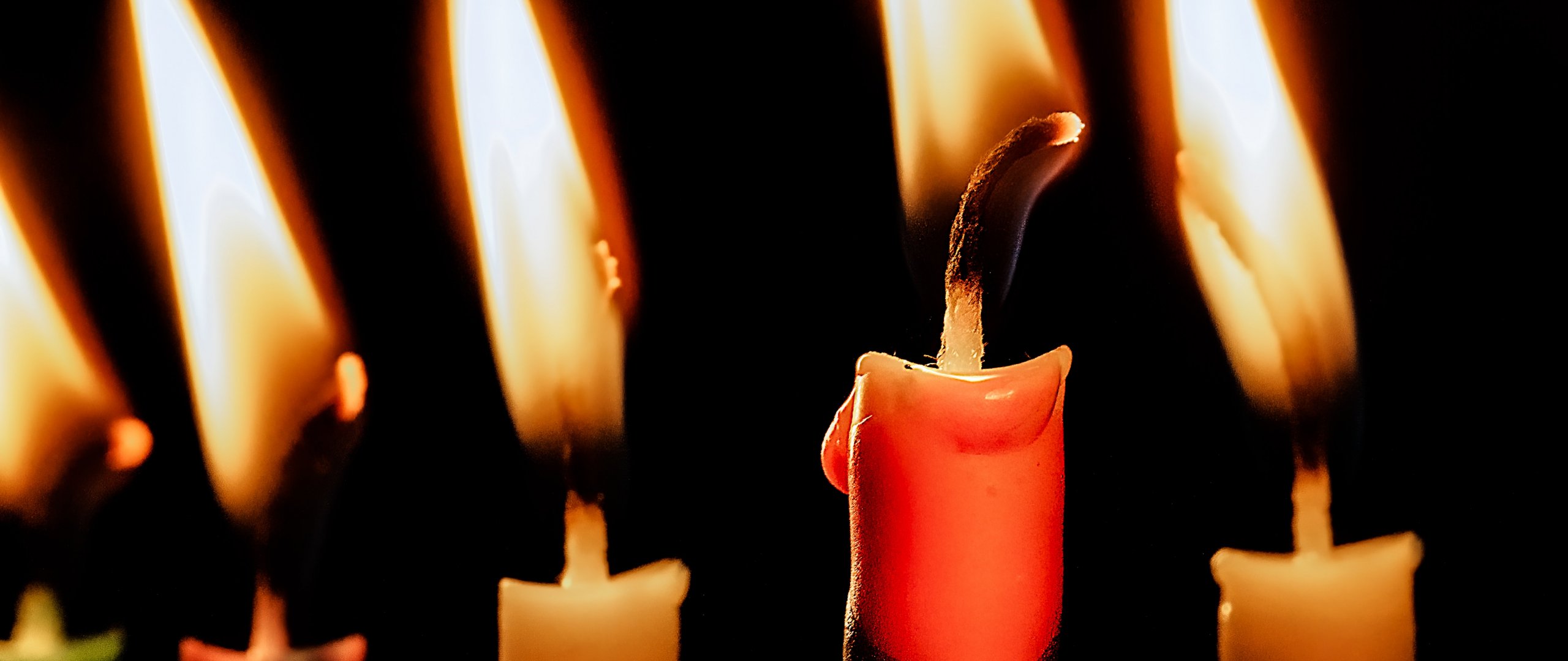 Wallpaper: candles, candle, fire, warm, black background - 2560x1080