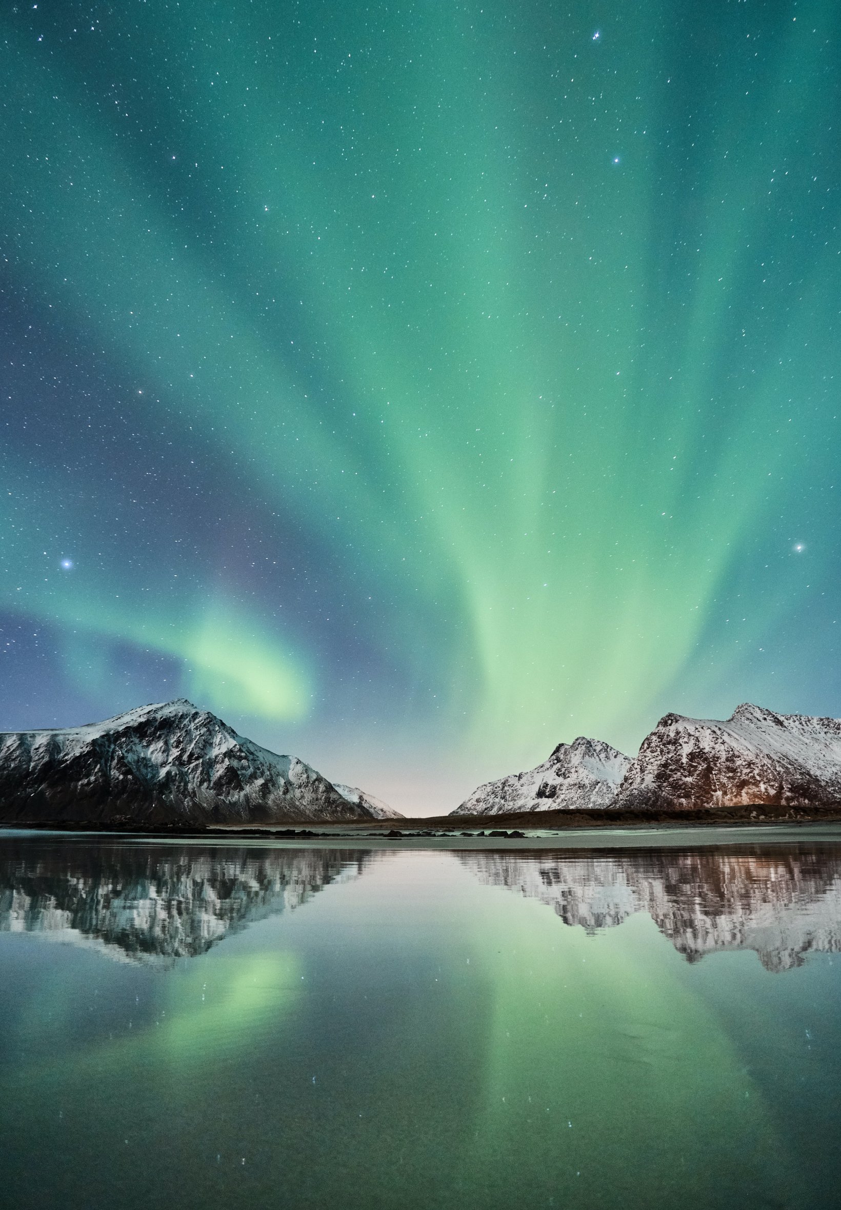 Wallpaper: northern lights, mountains, lake - 1640x2360