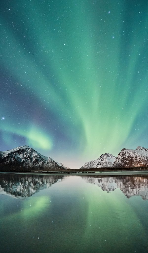 Wallpaper: northern lights, mountains, lake - 600x1024