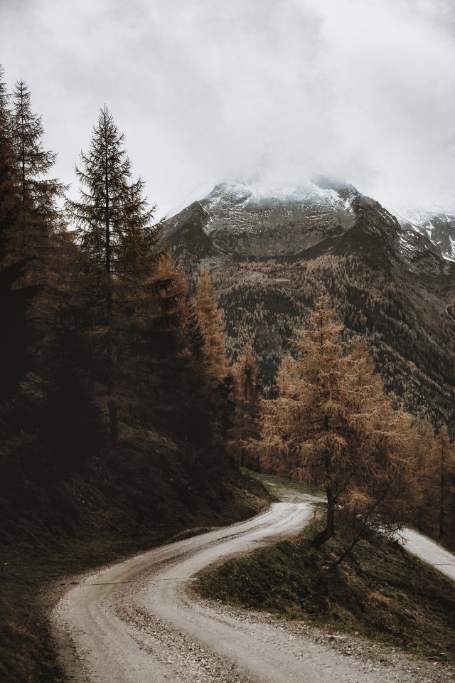 Wallpaper: larch, road, mountains - 640x960