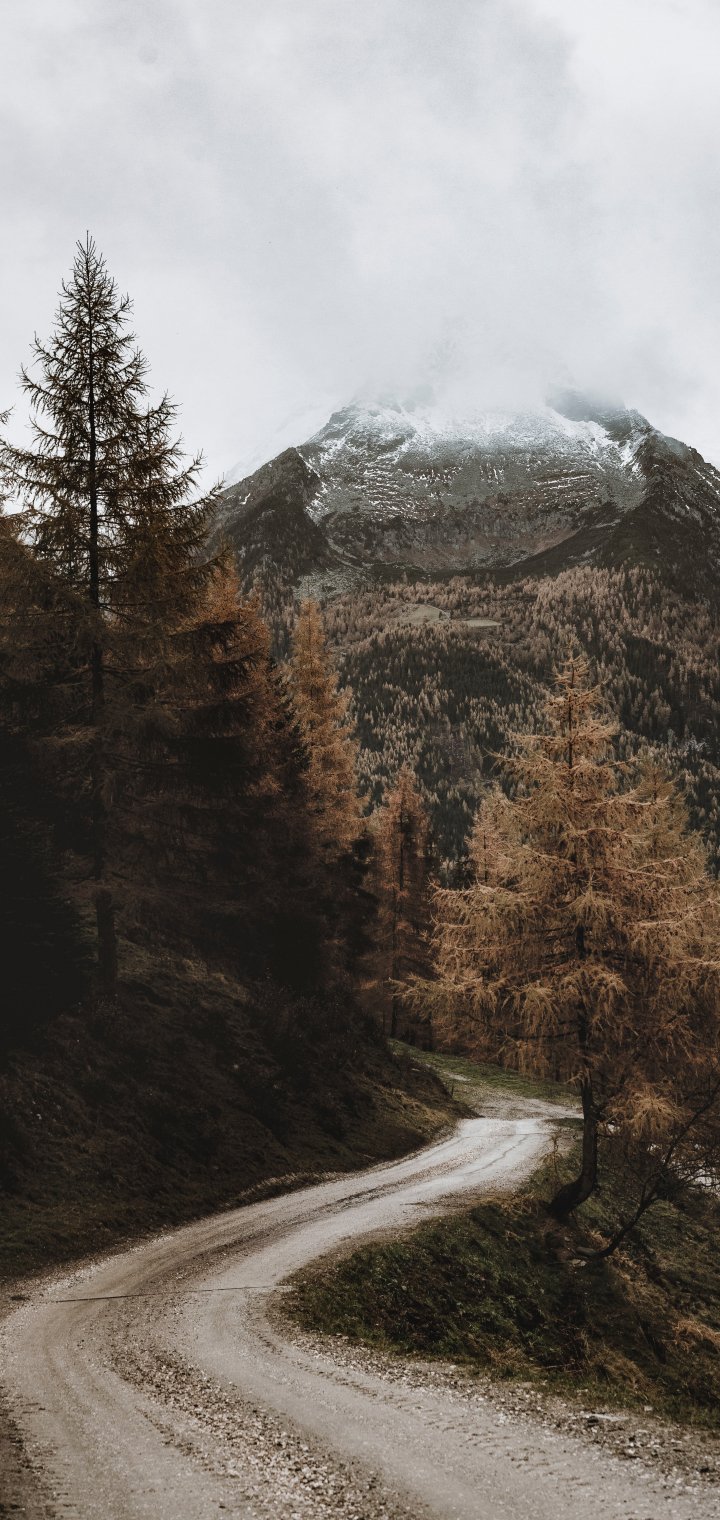 Wallpaper: larch, road, mountains - 720x1520