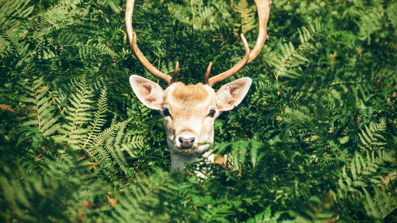 Wallpaper: deer, antlers, wildlife - 1366x768
