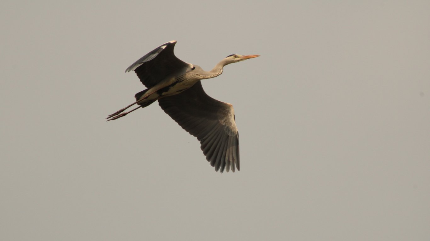 Wallpaper: gray heron, flight, bird - 1366x768