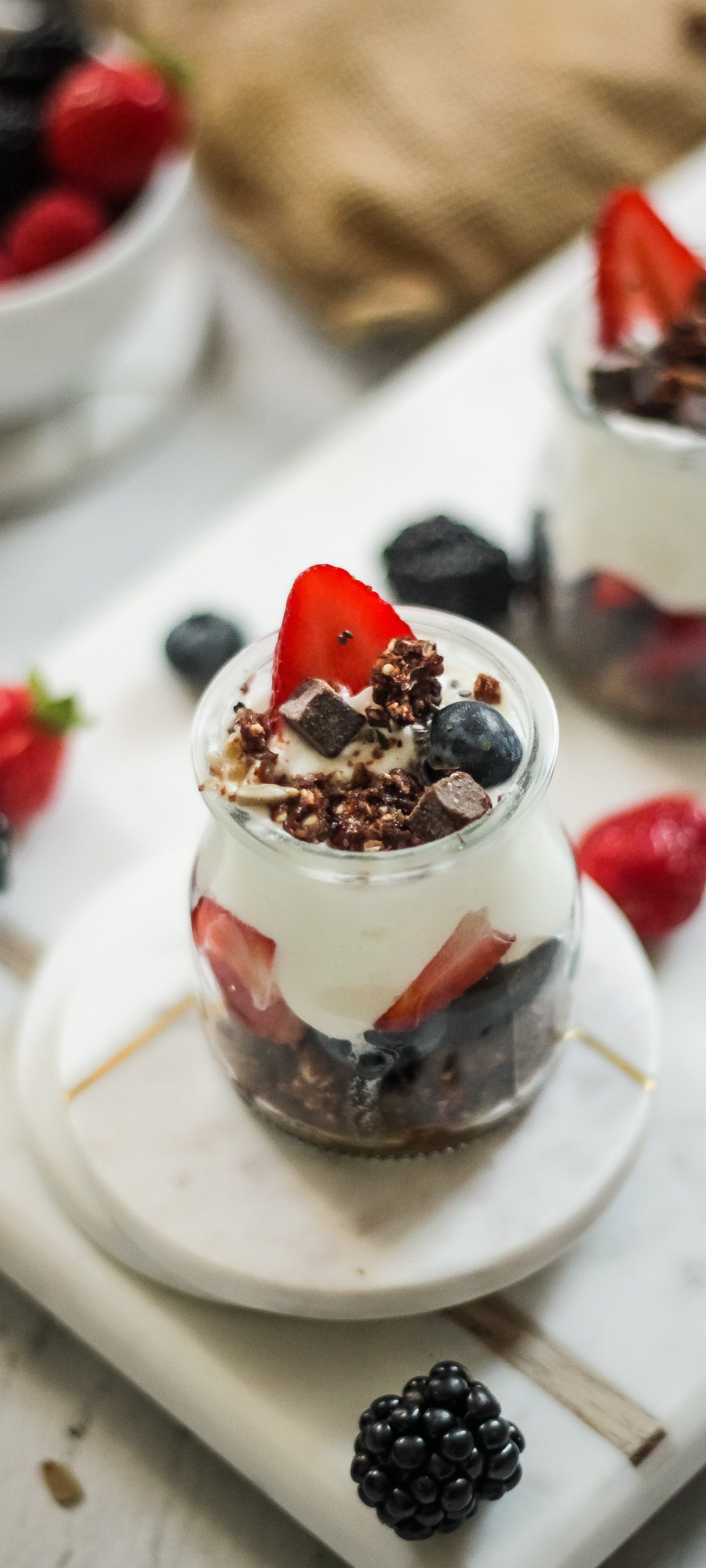 Wallpaper: dessert, strawberry, panacotta - 1440x3200