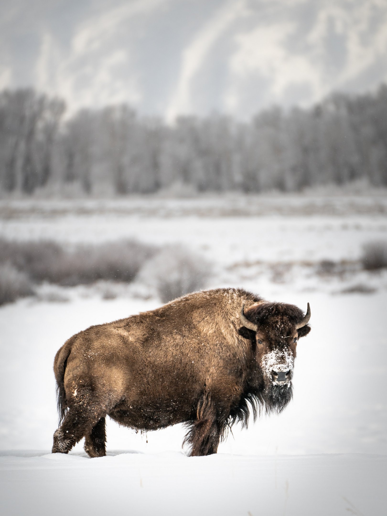 Wallpaper: bison, winter, snow - 1620x2160