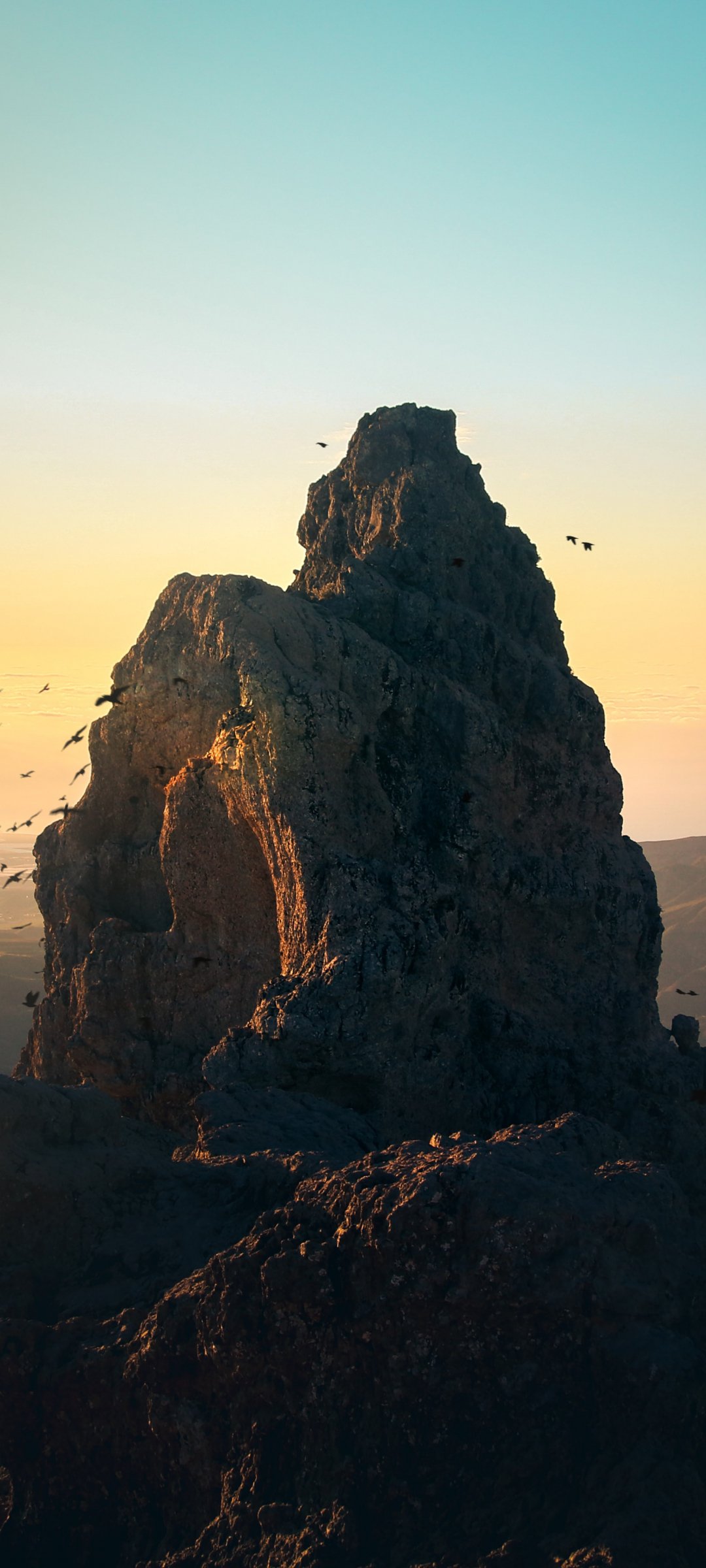 Wallpaper: mountain, birds, dawn - 1080x2400