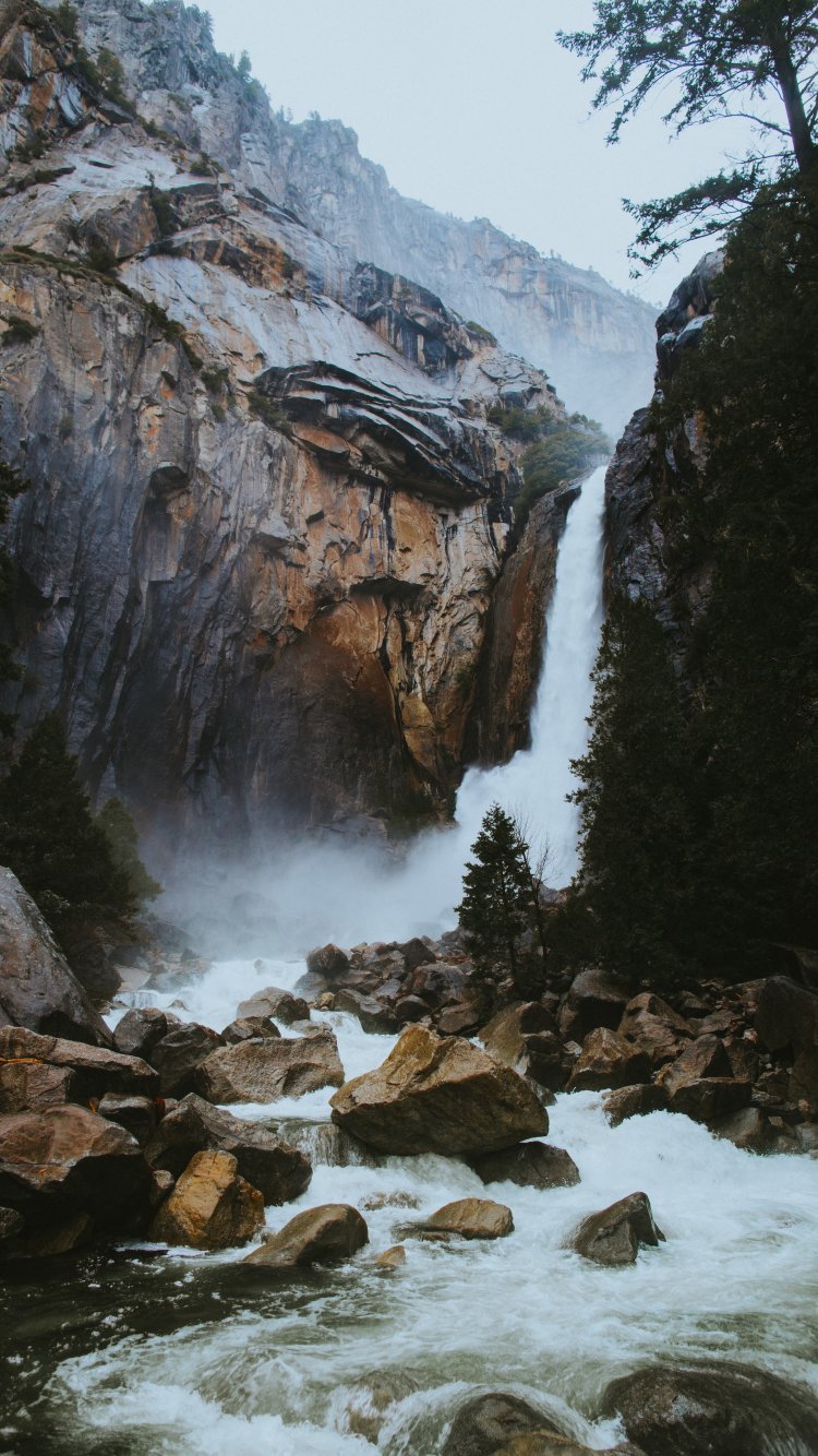 Wallpaper: waterfall, river, stones - 750x1334