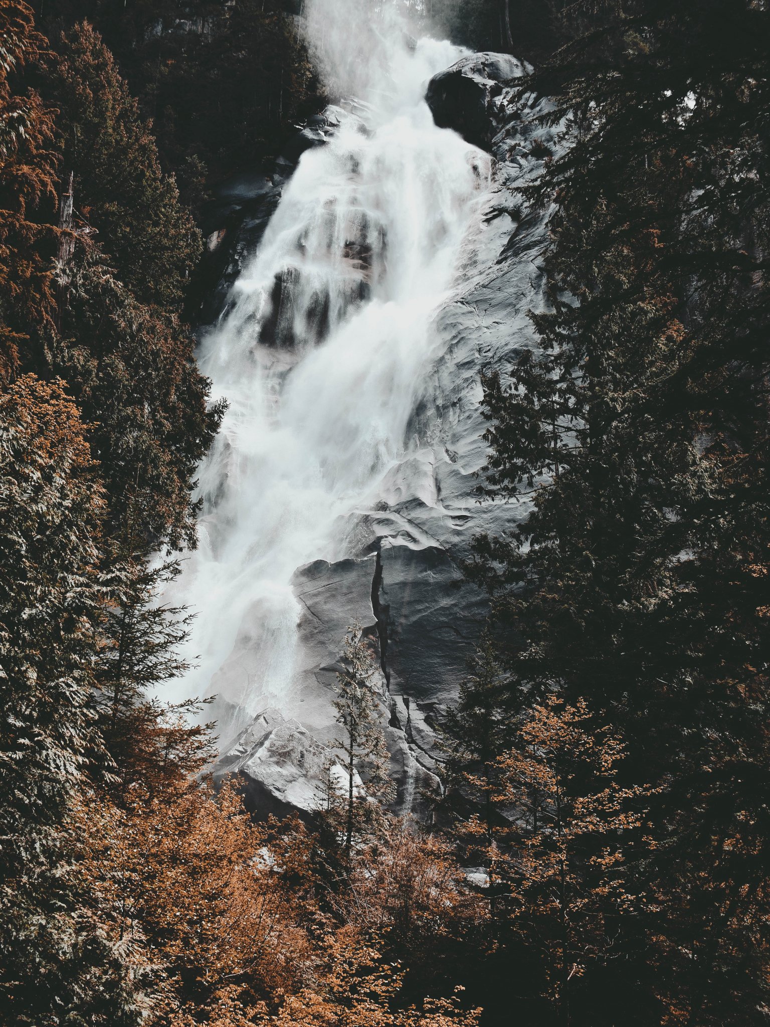 Wallpaper: waterfall, mountains, trees - 1536x2048