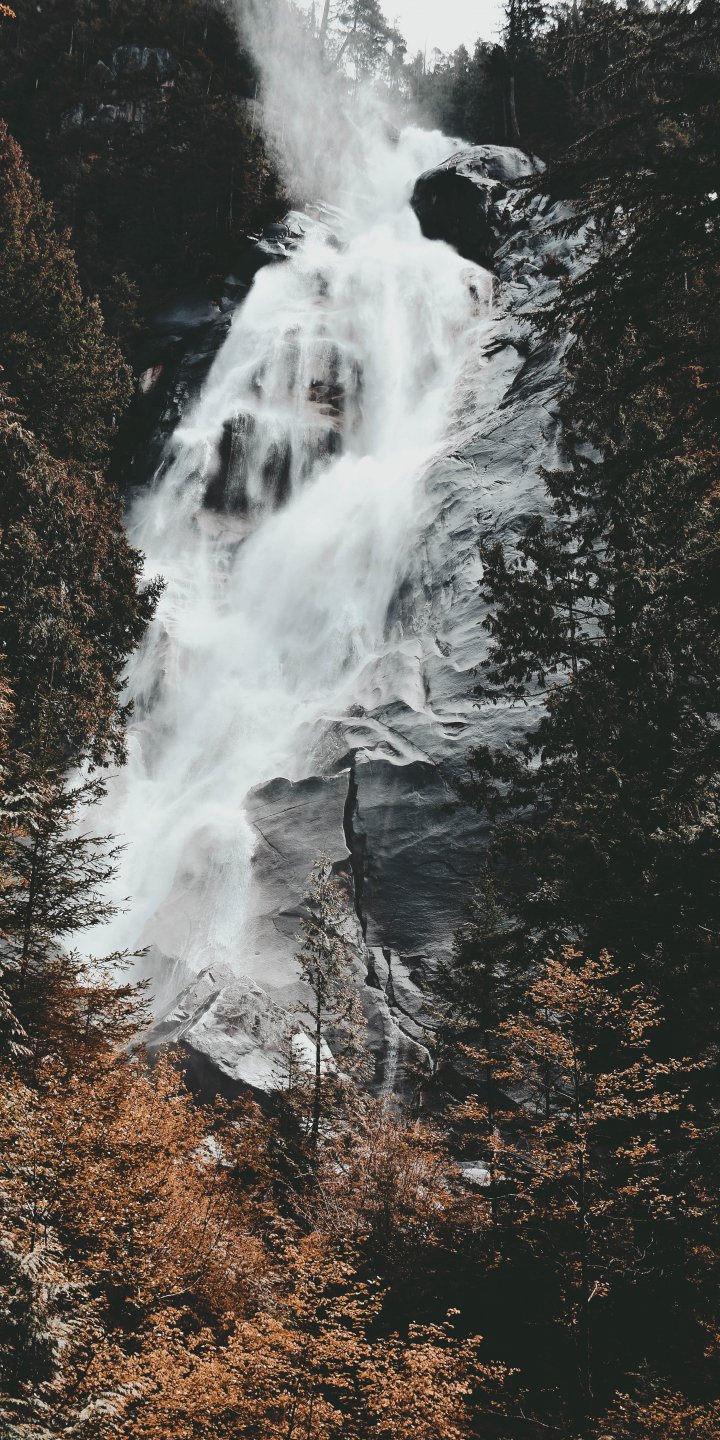 Wallpaper: waterfall, mountains, trees - 720x1440
