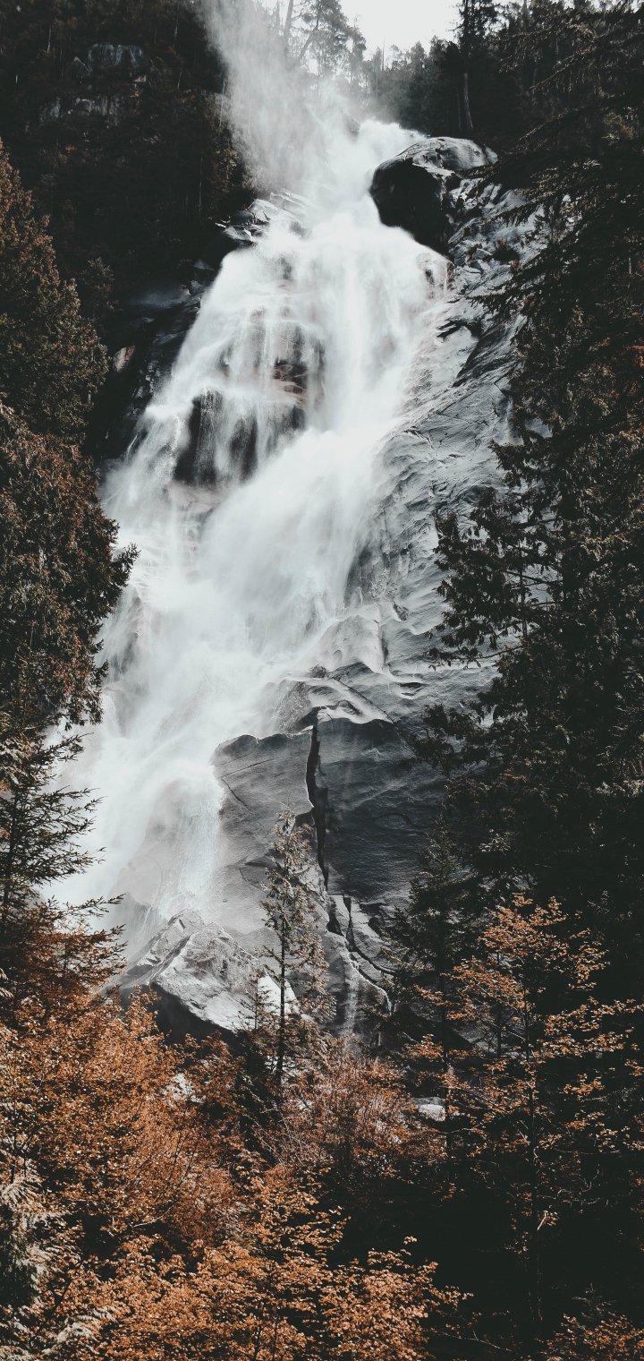 Wallpaper: waterfall, mountains, trees - 720x1520