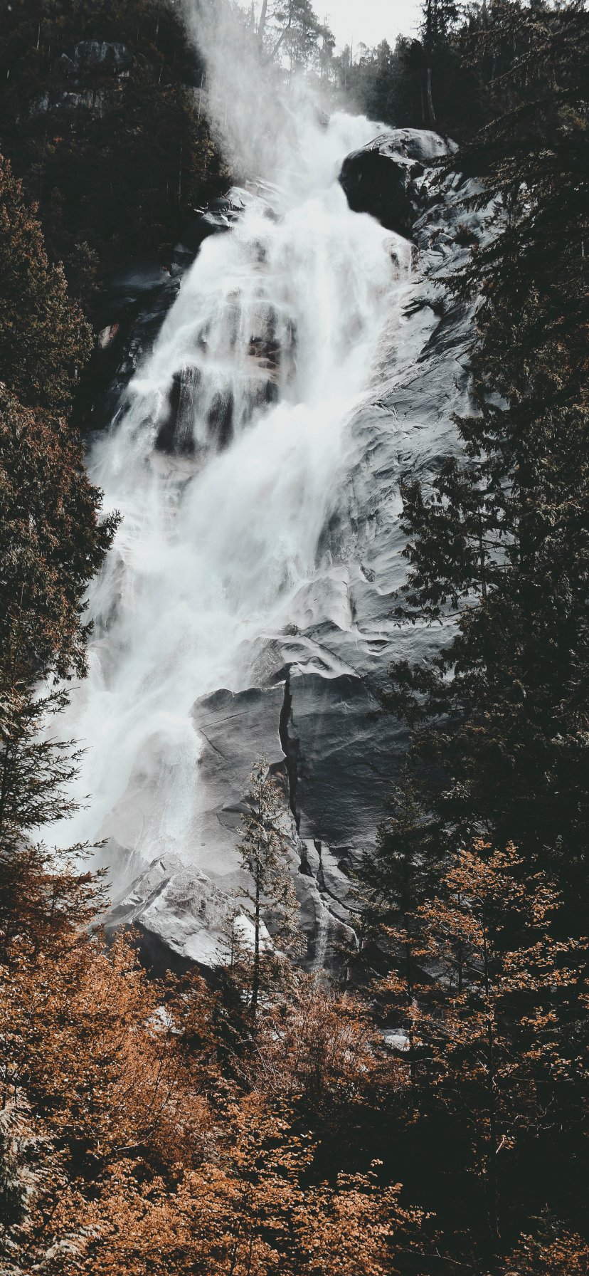 Wallpaper: waterfall, mountains, trees - 828x1792