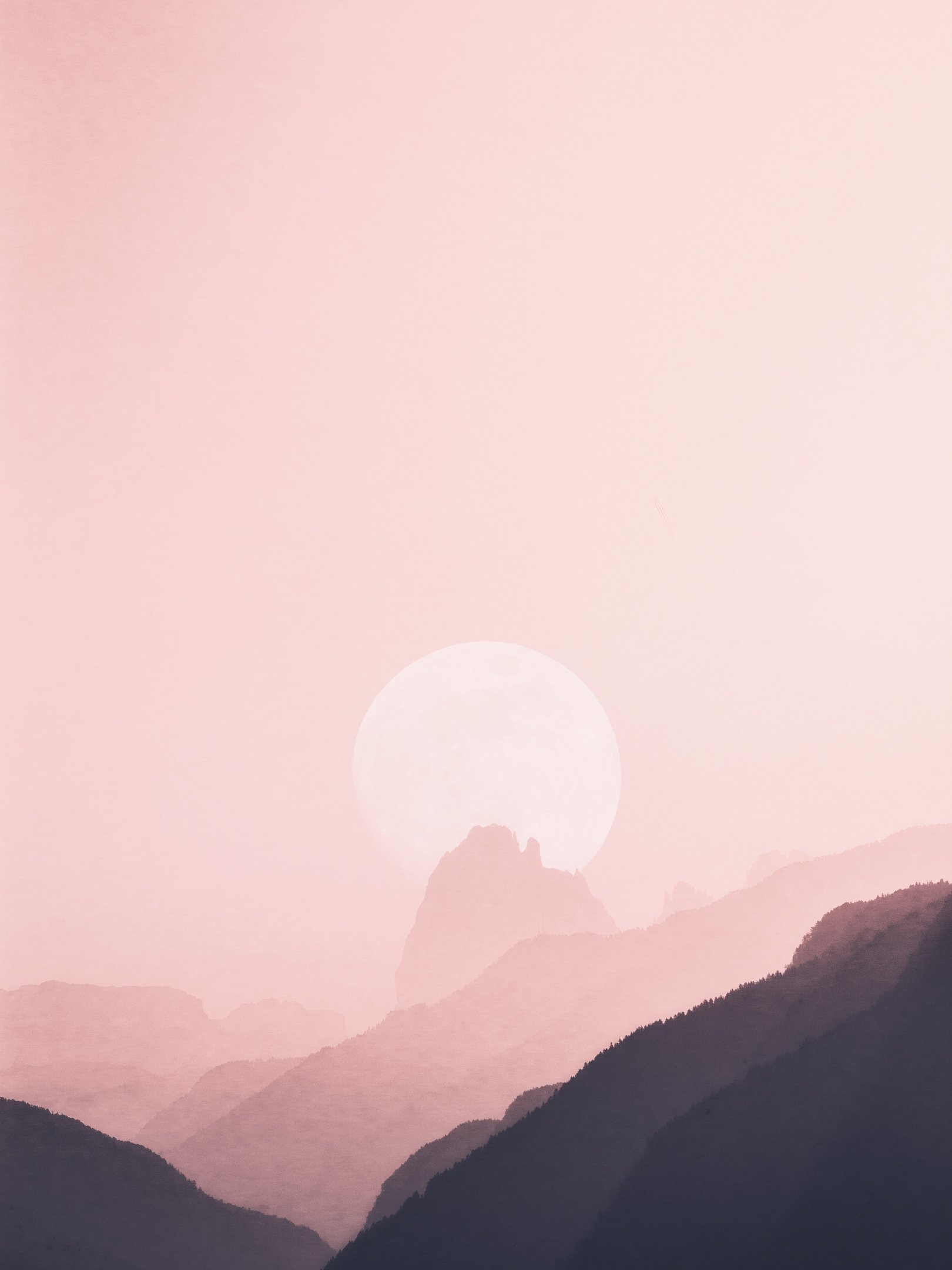 Wallpaper: sky, mountains, pink, sun - 1620x2160