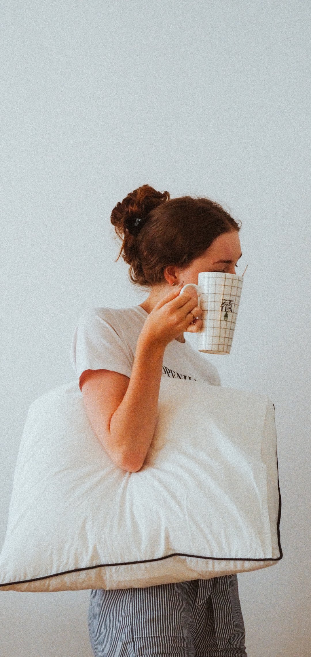 Wallpaper: girl, pillow, mug - 1080x2280