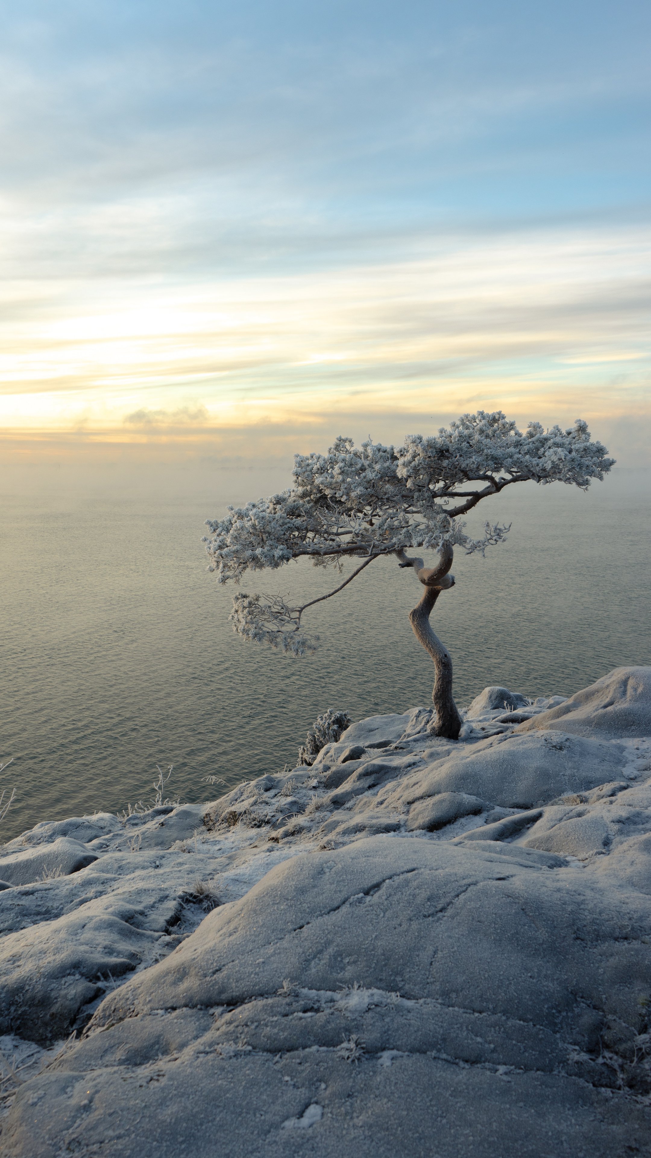 Wallpaper: tree, sea, snow - 2160x3840