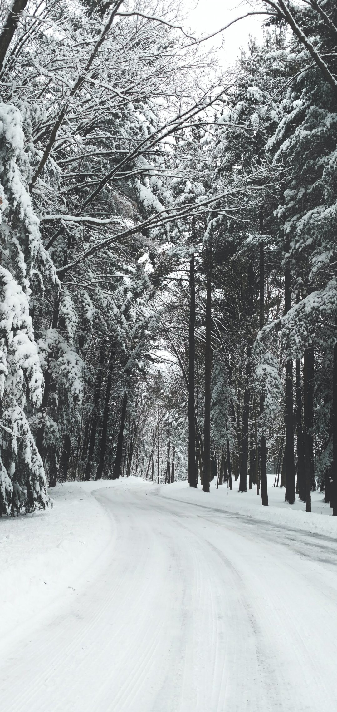 Wallpaper: forest, winter, snow, road - 1080x2280