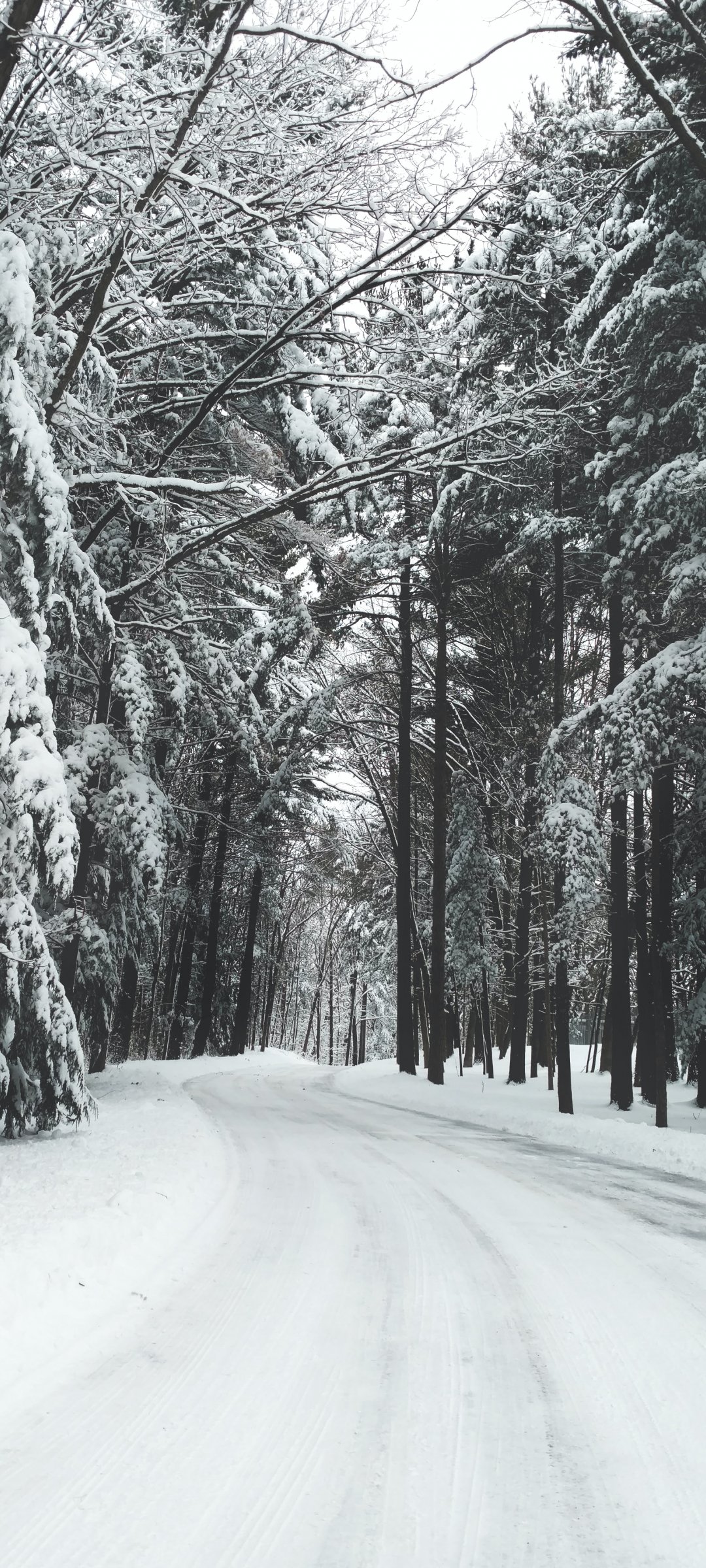 Wallpaper: forest, winter, snow, road - 1080x2400