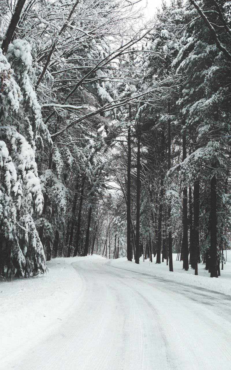 Wallpaper: forest, winter, snow, road - 800x1280