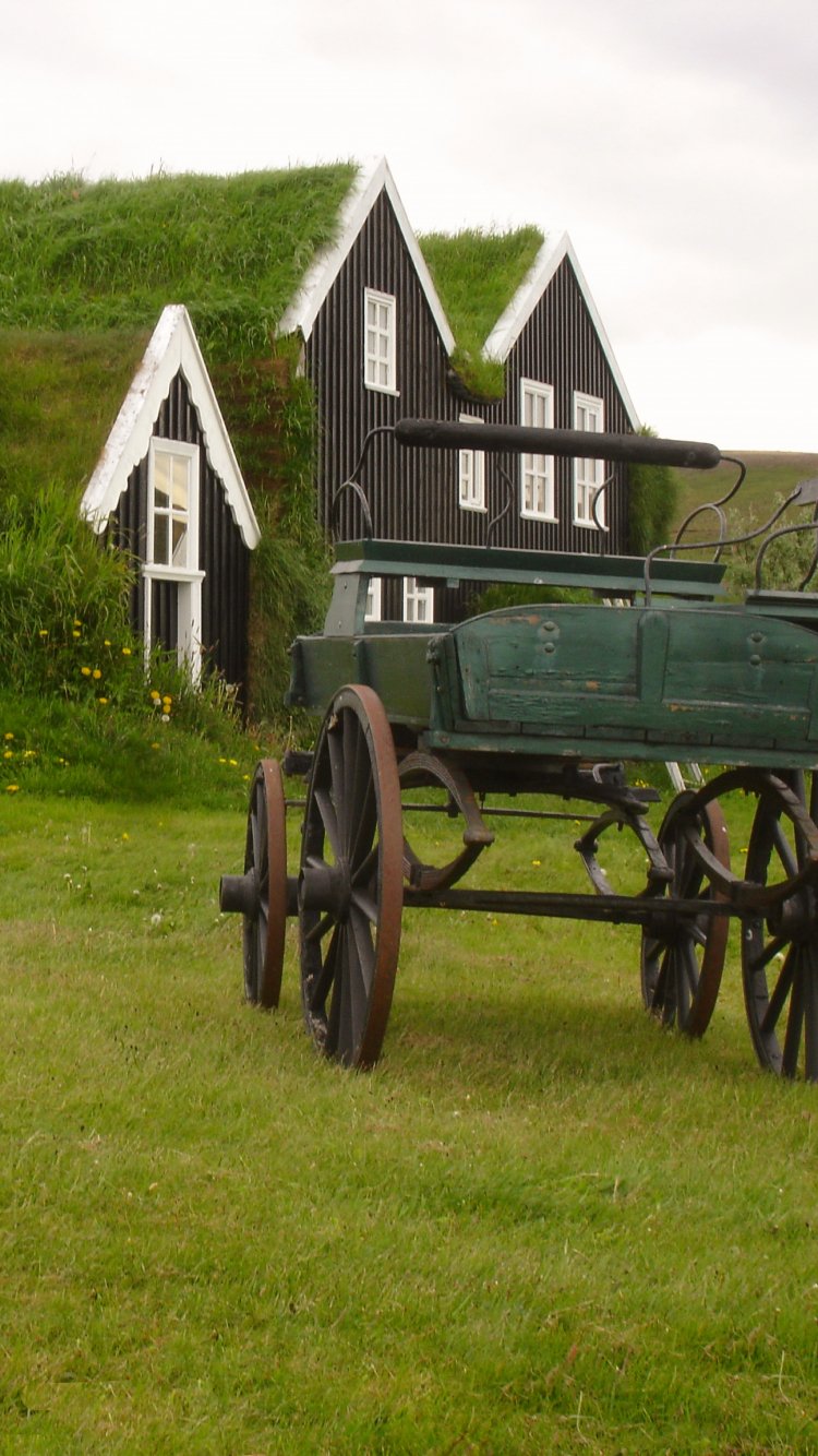 Wallpaper: Iceland, green, house, telga - 750x1334