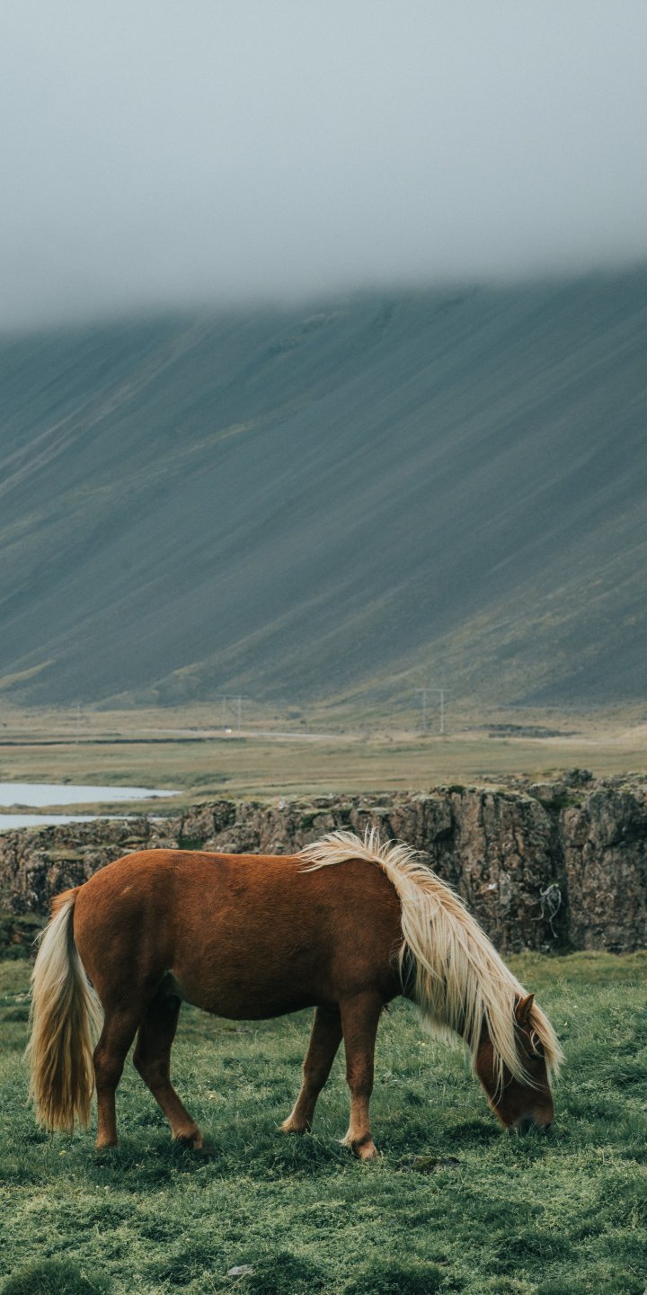 Wallpaper: Iceland, horse, pole - 720x1440