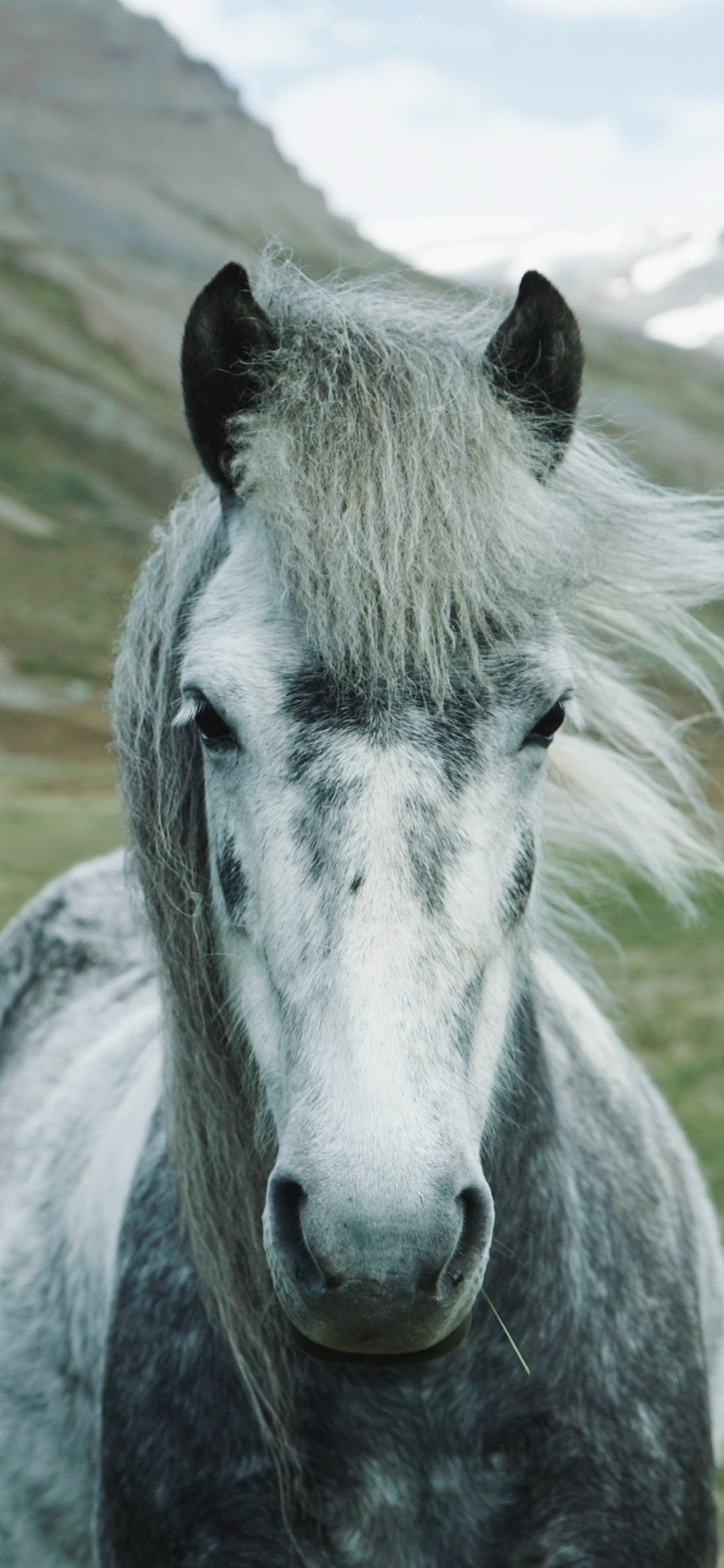 Wallpaper: horse, mountains, pasture - 1125x2436