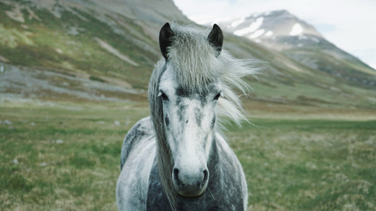 Wallpaper: horse, mountains, pasture - 1280x720