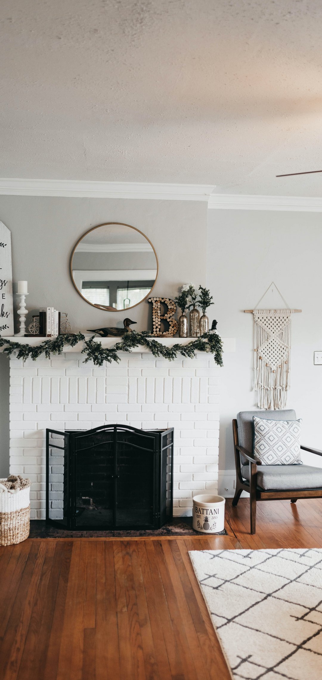 Wallpaper: interior, fireplace, light - 1080x2280