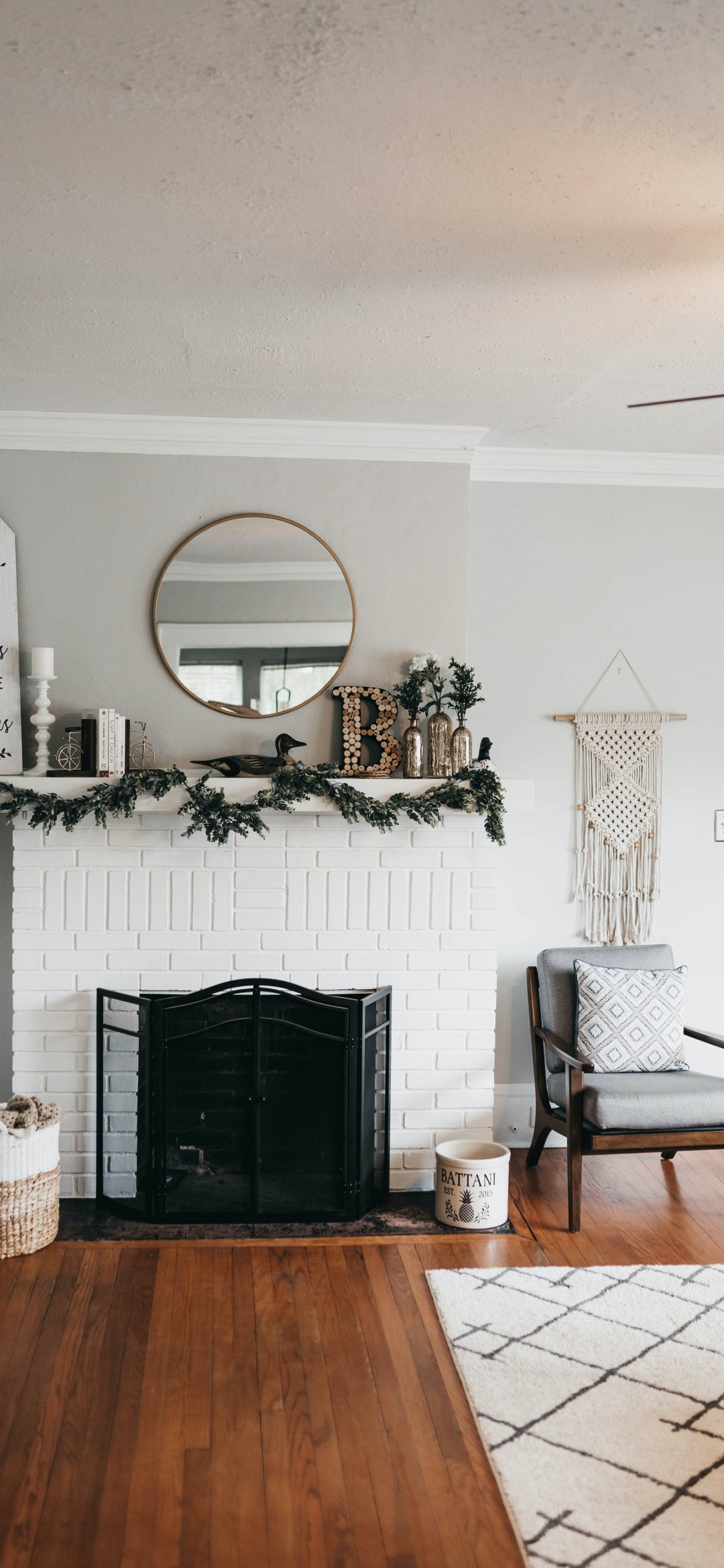 Wallpaper: interior, fireplace, light - 1080x2340