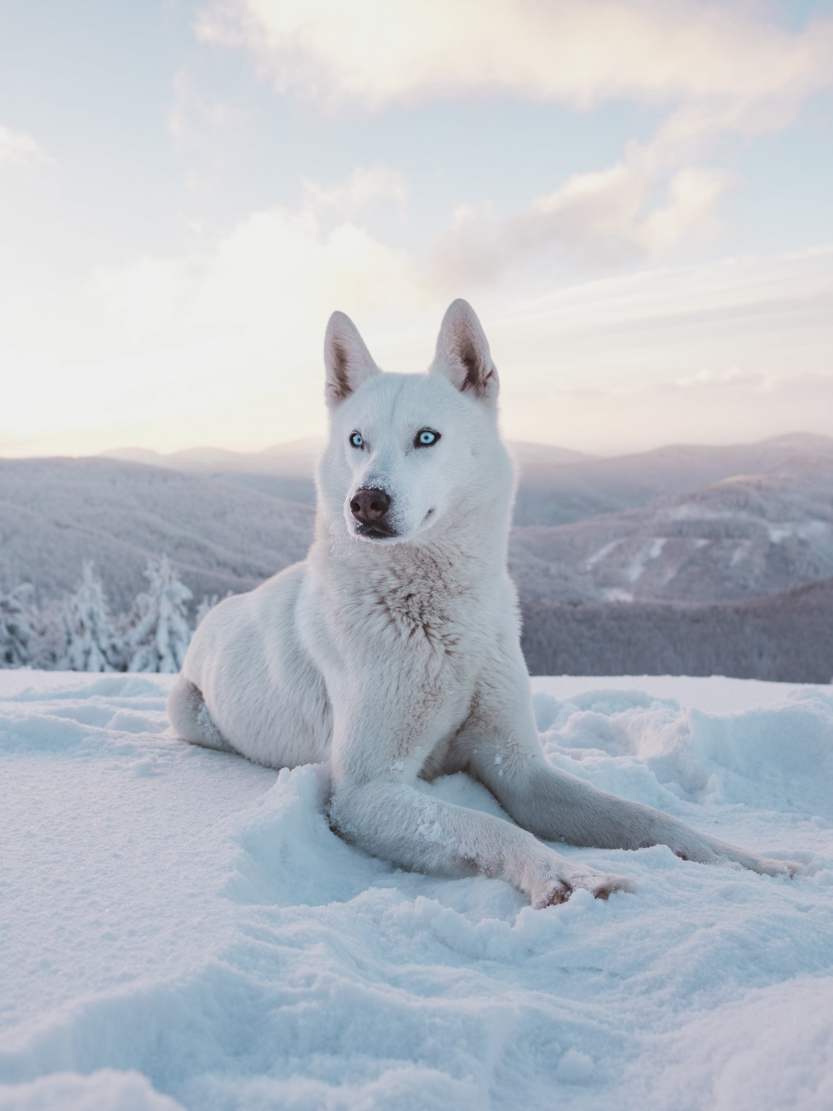 Wallpaper: dog, snow, winter, mountains - 1620x2160