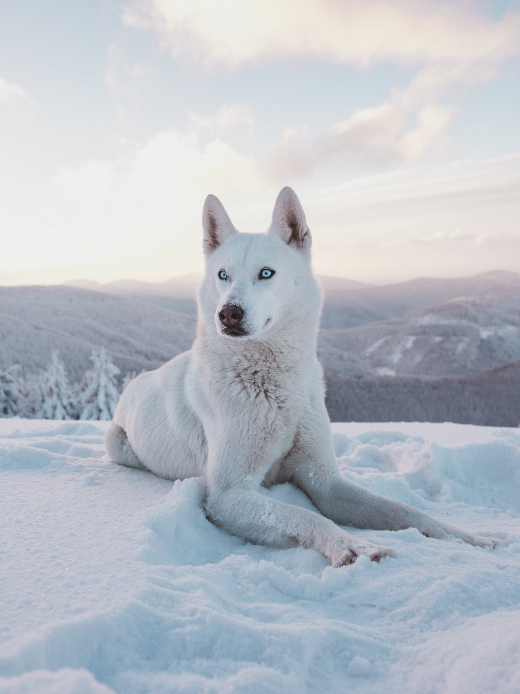 Wallpaper: dog, snow, winter, mountains - 1668x2224