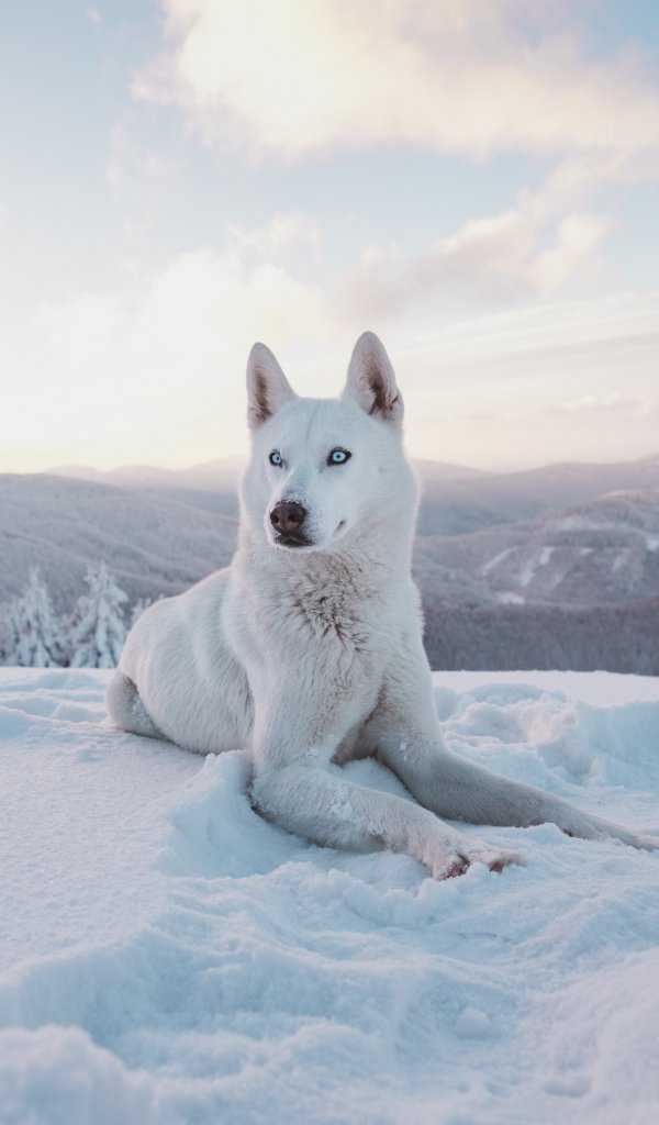 Wallpaper: dog, snow, winter, mountains - 600x1024