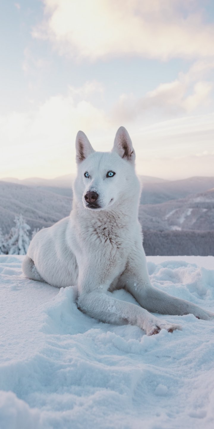 Wallpaper: dog, snow, winter, mountains - 720x1440