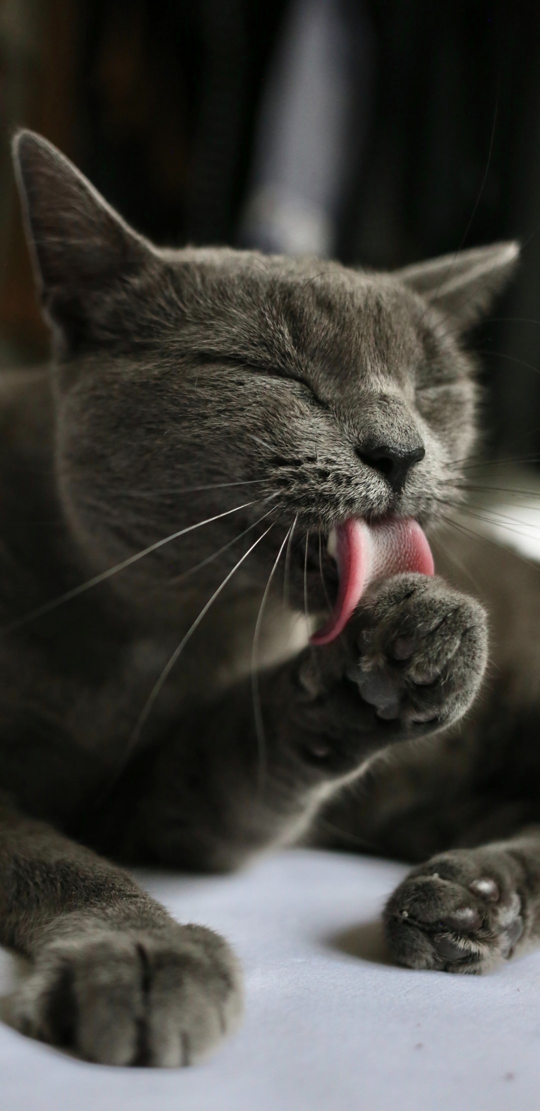 Wallpaper: cat, lick, gray - 1080x2220