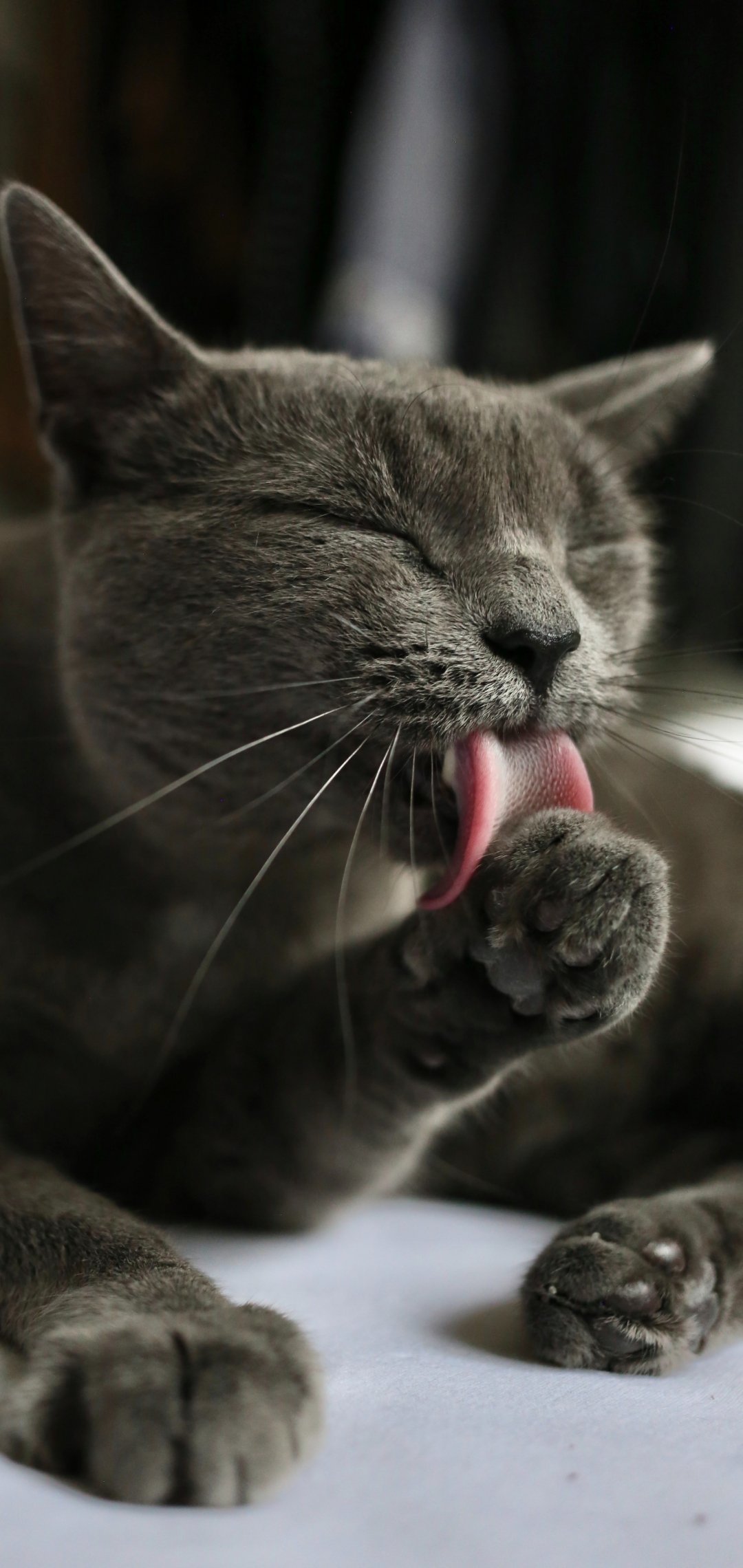 Wallpaper: cat, lick, gray - 1080x2280