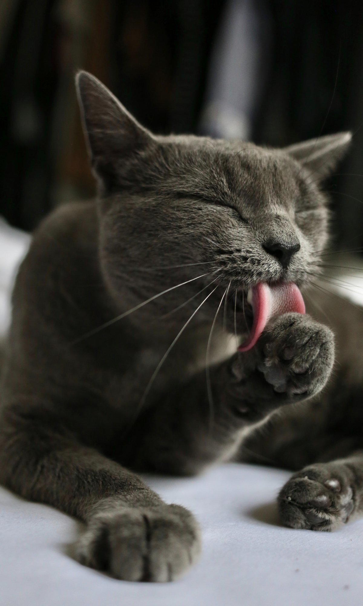 Wallpaper: cat, lick, gray - 1200x2000