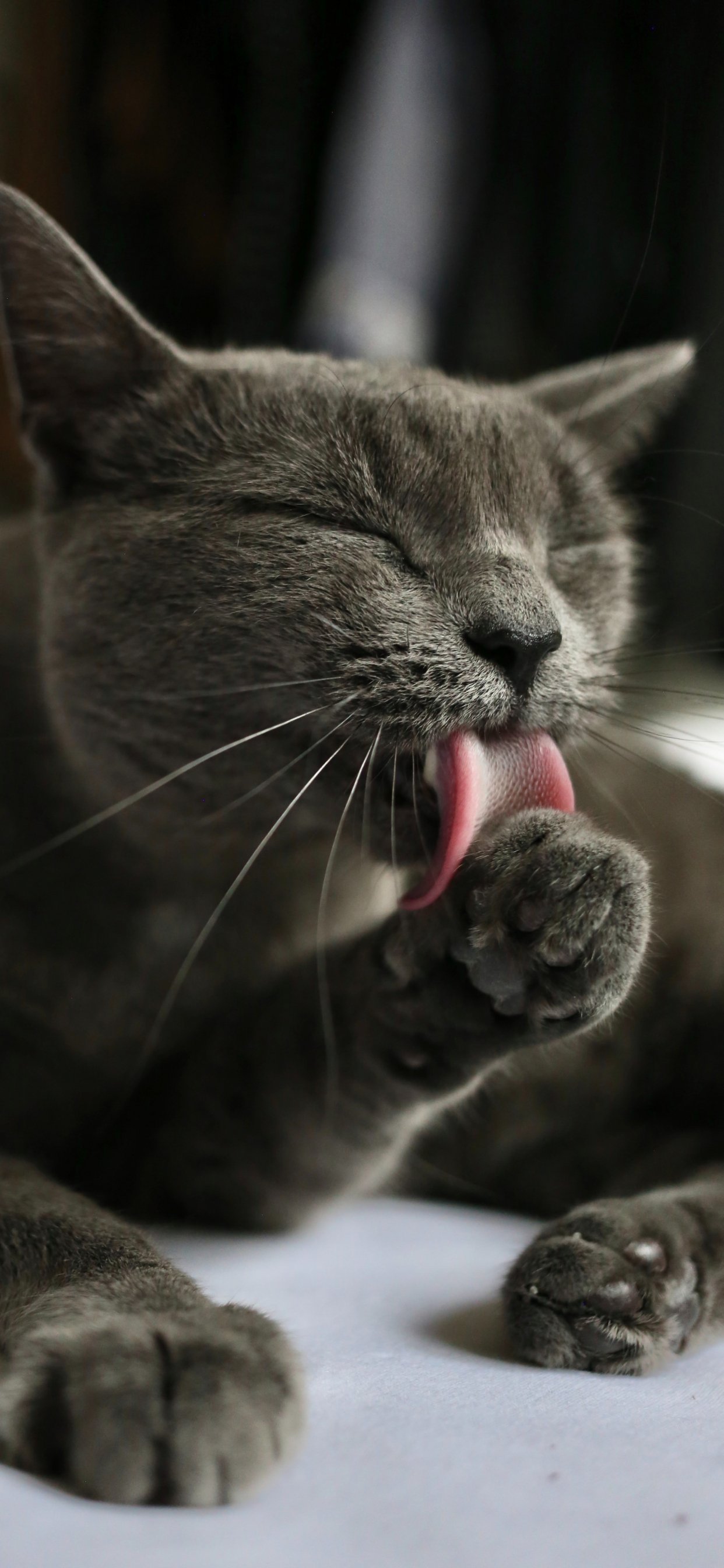 Wallpaper: cat, lick, gray - 1242x2688