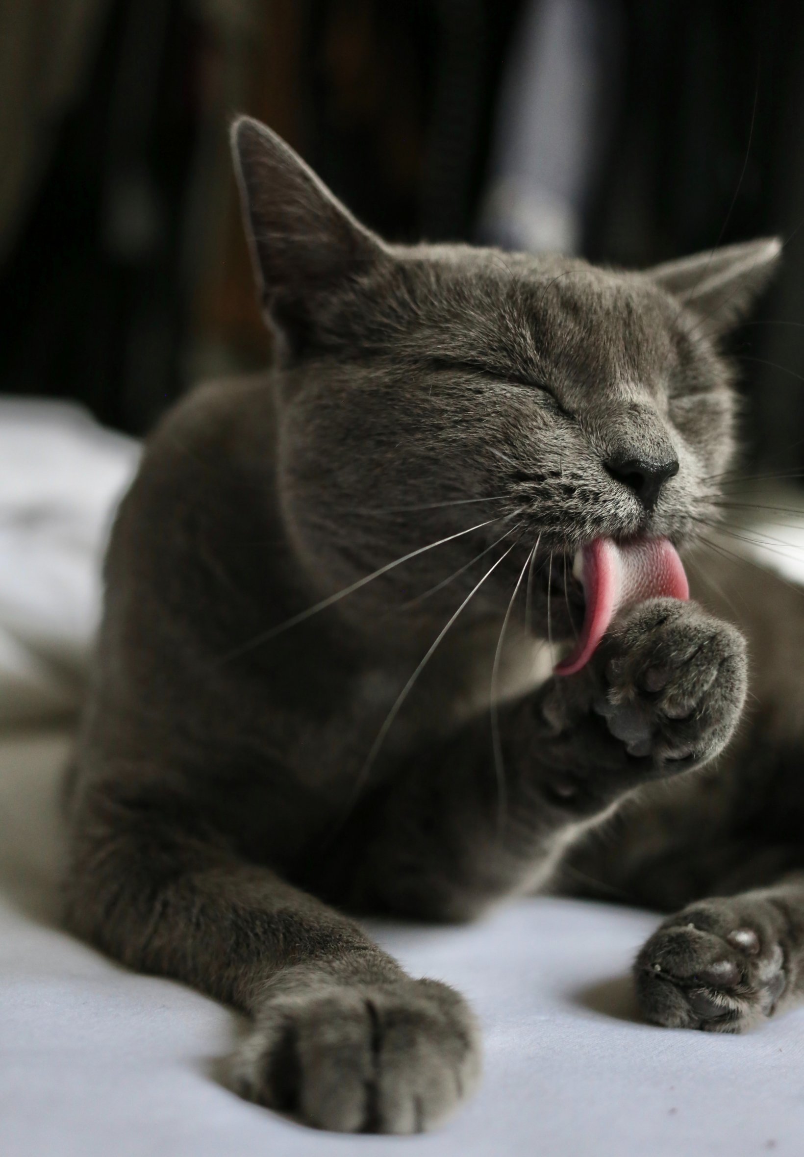 Wallpaper: cat, lick, gray - 1640x2360