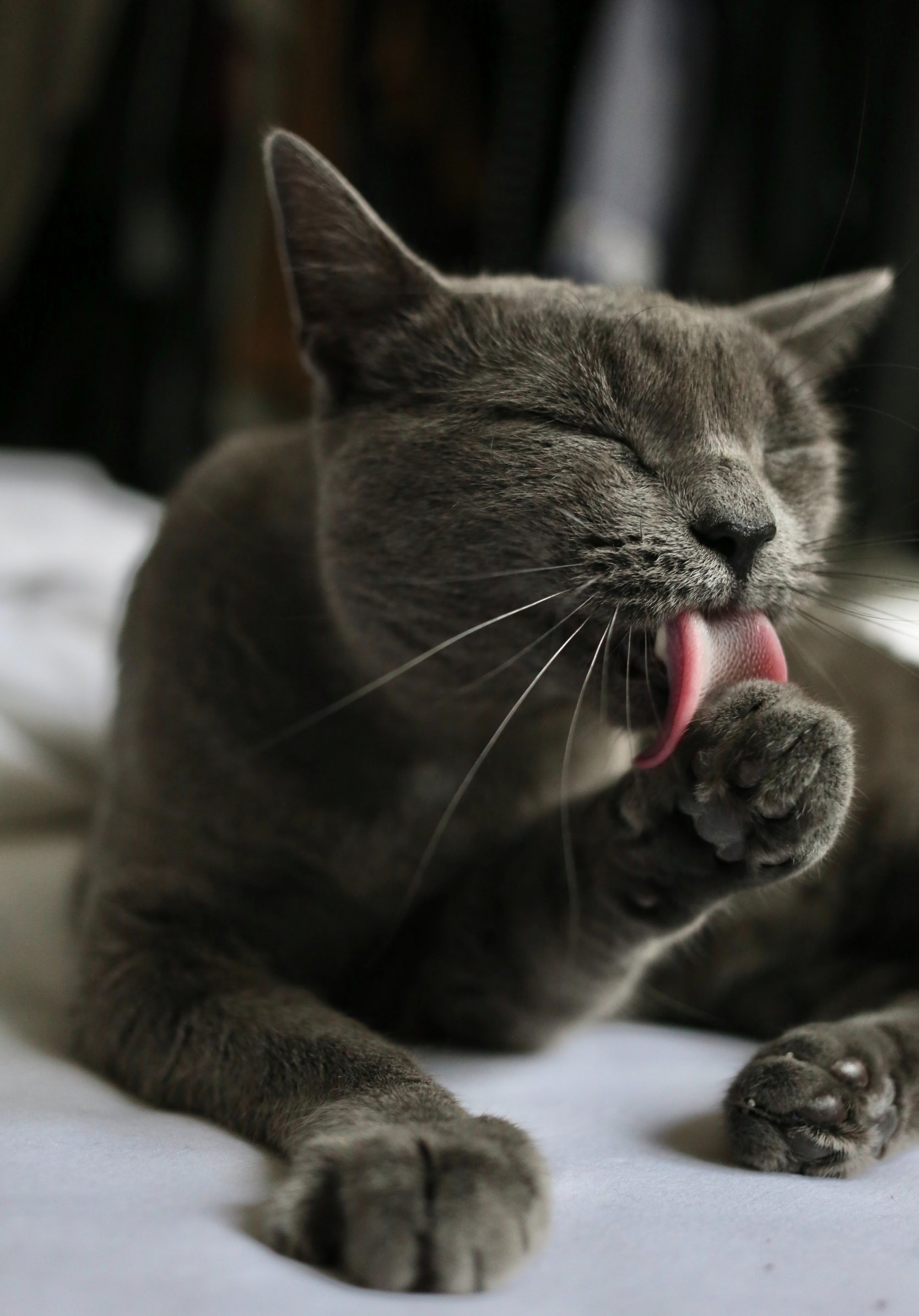 Wallpaper: cat, lick, gray - 1668x2388