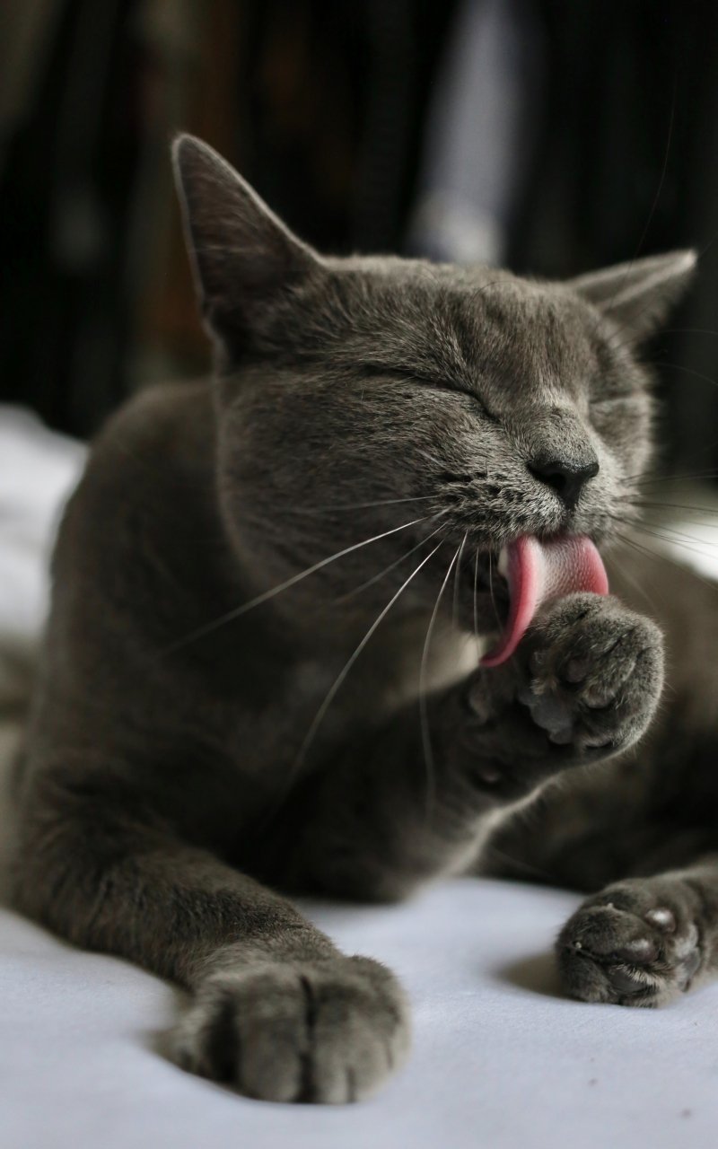 Wallpaper: cat, lick, gray - 800x1280