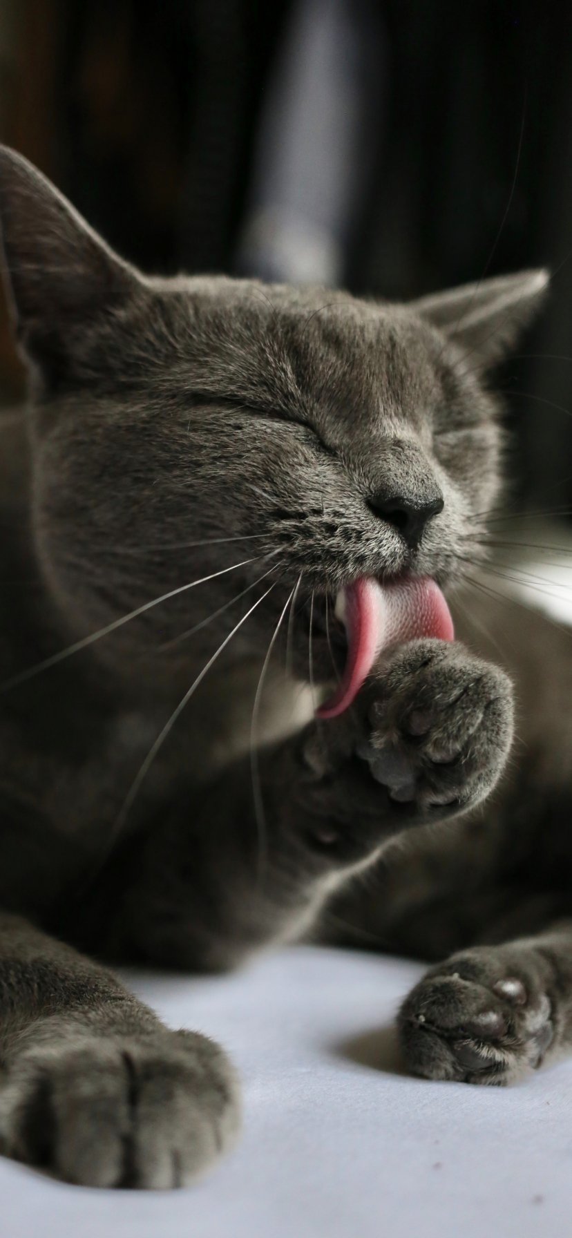 Wallpaper: cat, lick, gray - 828x1792