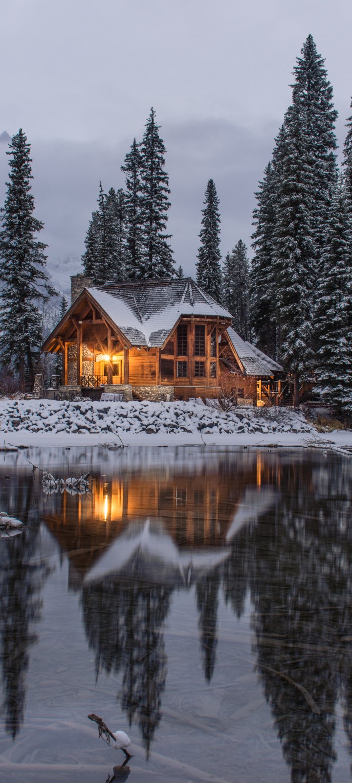 Wallpaper: lake house, trees - 720x1600