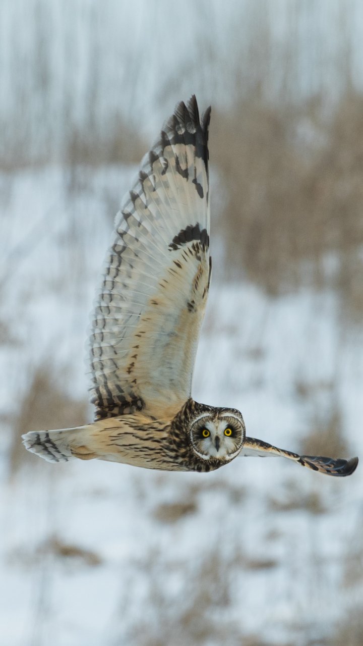 Wallpaper: owl, yellow eyes, flight - 720x1280