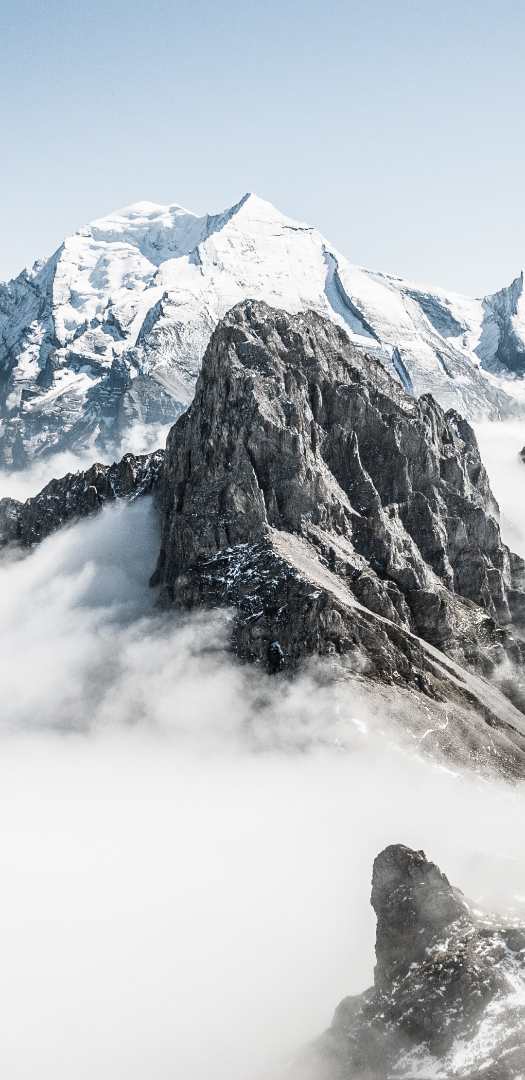 mountains, snow, clouds Wallpaper 1080x2220