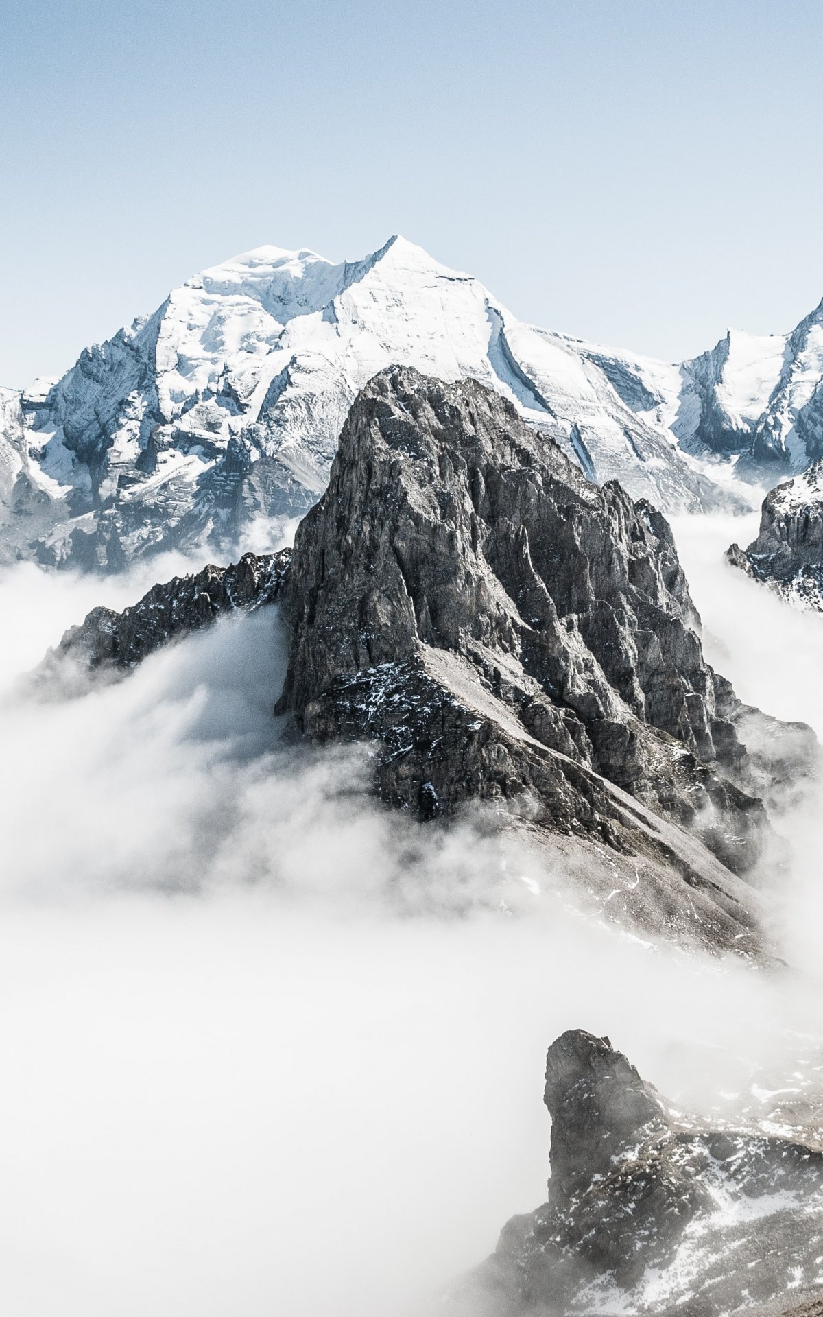 mountains, snow, clouds Wallpaper 1200x1920