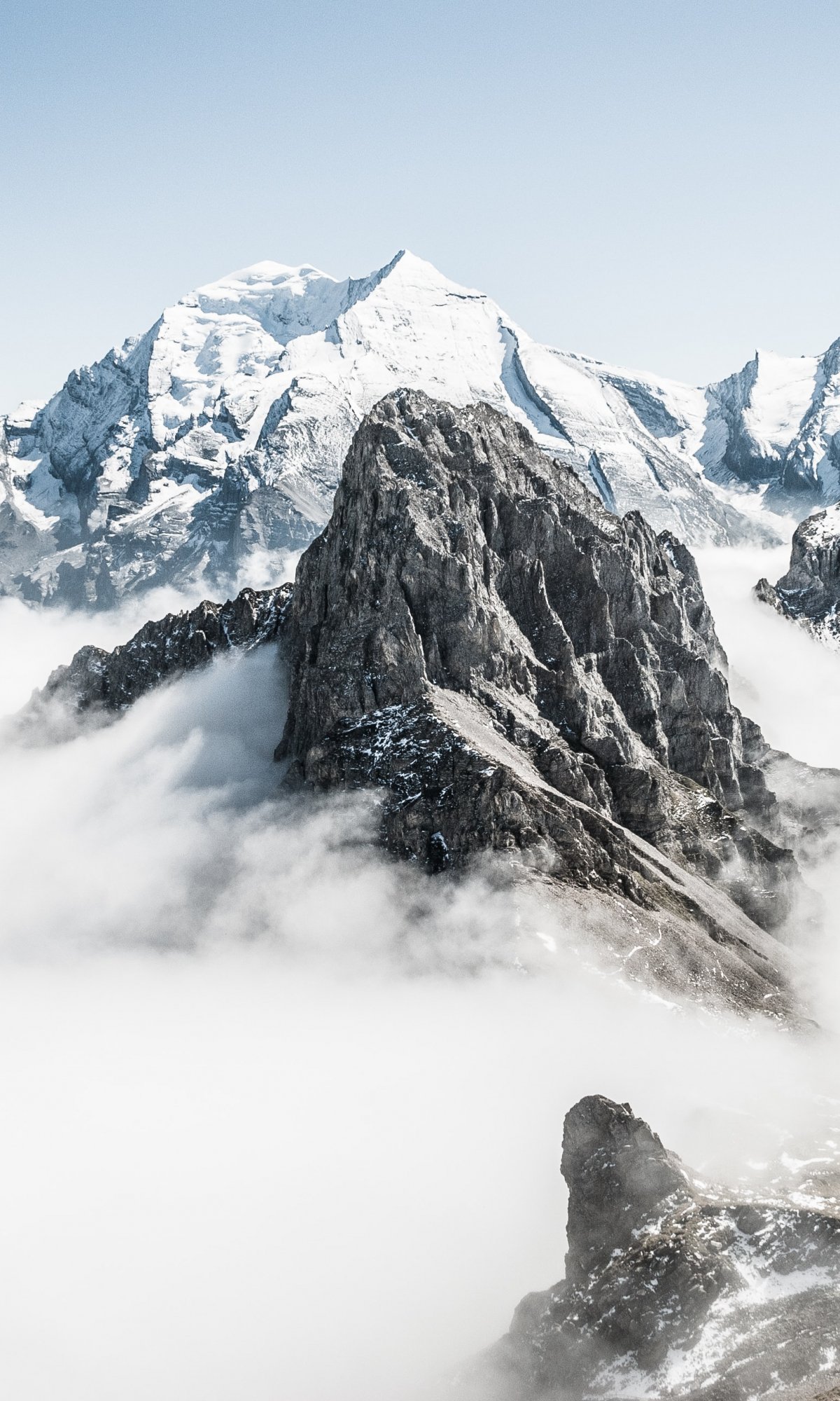 mountains, snow, clouds Wallpaper 1200x2000