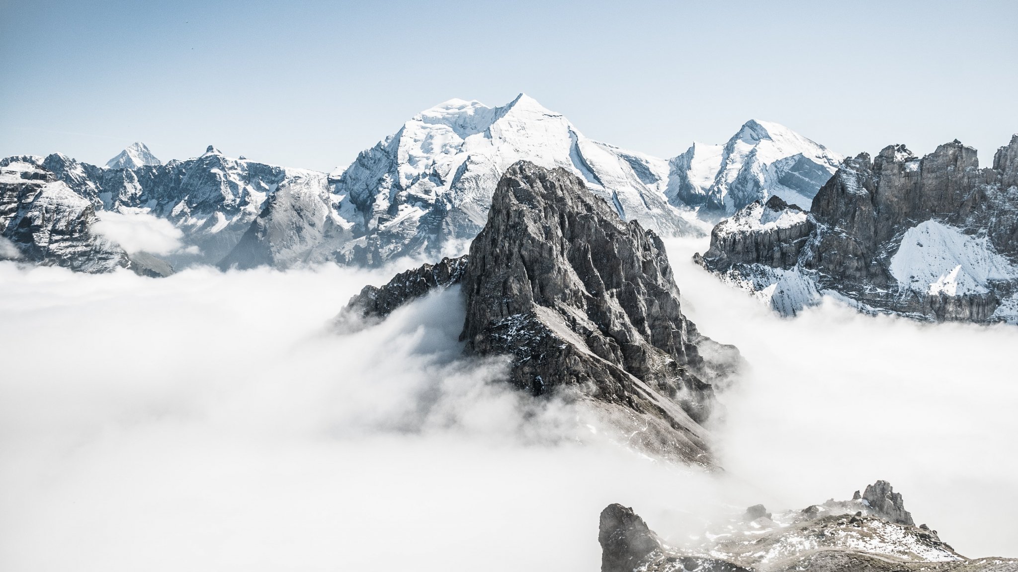 snowy mountains, sky Wallpaper 2048x1152