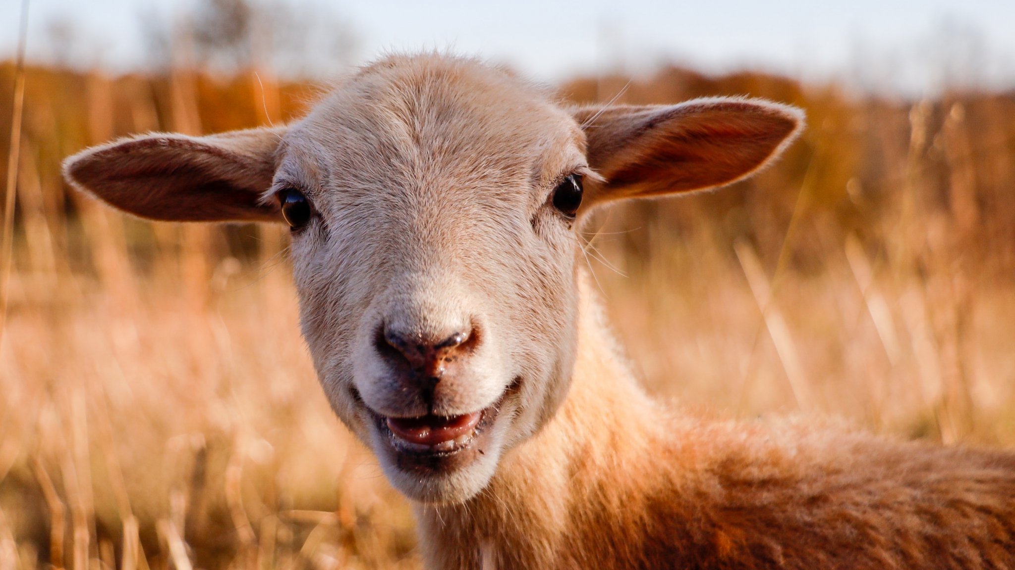 Wallpaper: sheep, smile, joy - 2048x1152