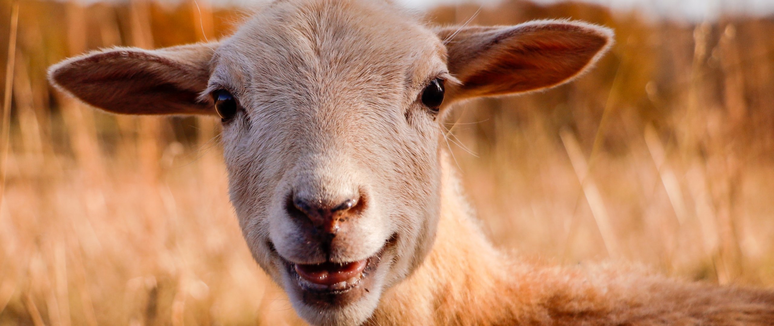 Wallpaper: sheep, smile, joy - 2560x1080