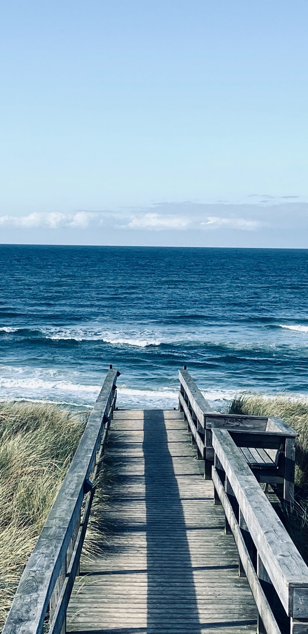 Wallpaper: sea, shore, pier, grass - 1080x2220