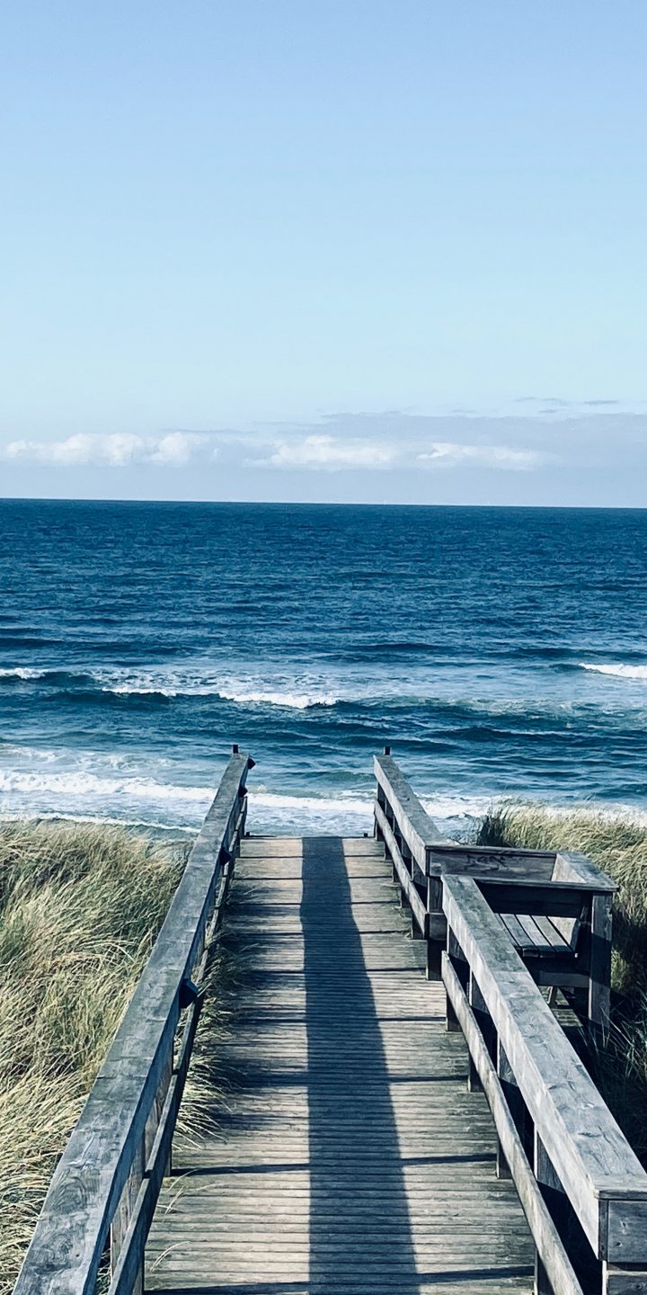 Wallpaper: sea, shore, pier, grass - 720x1440