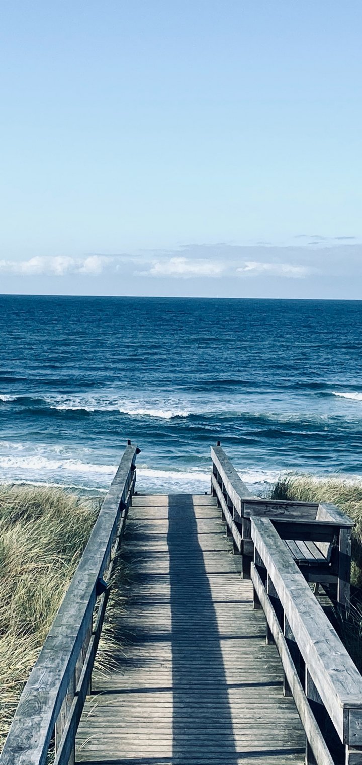 Wallpaper: sea, shore, pier, grass - 720x1520